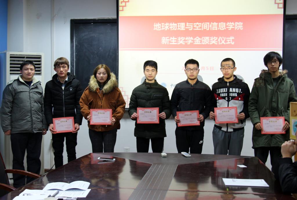 (通讯员张川  摄影祁阳阳)2018年1月5日下午,开云体育官网 在物探楼214召开2017级新生入学奖学金颁奖仪式。武汉中仪物联技术股份有限公司董事长郑洪标、学院党委副书记李周波,辅导员张川、祁阳阳,2017级各班班长、团支书以及10名获奖新生参会。