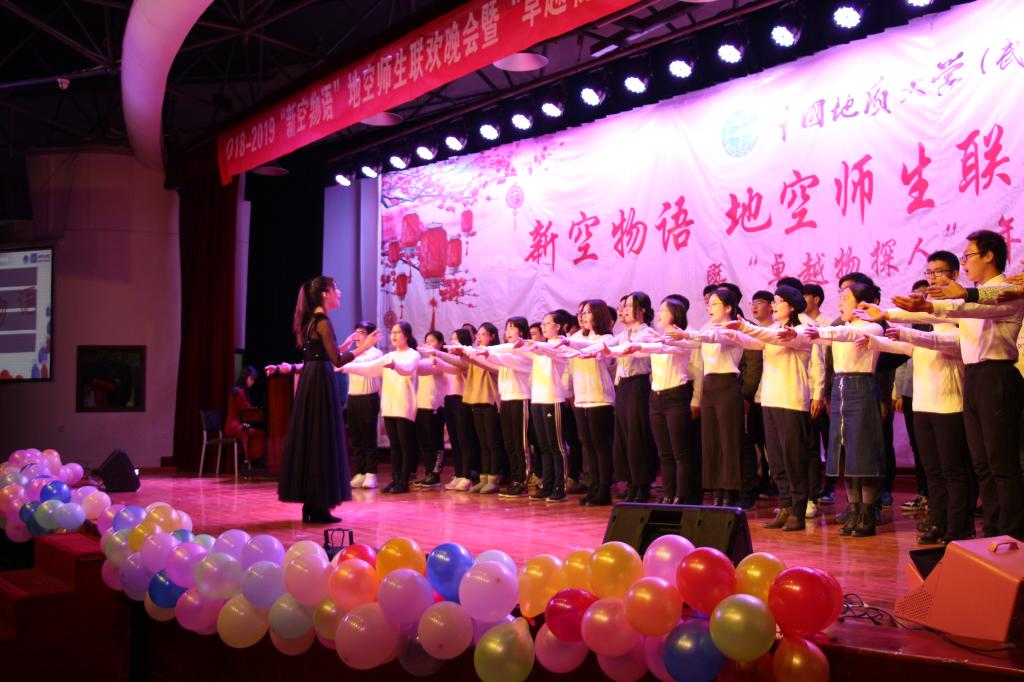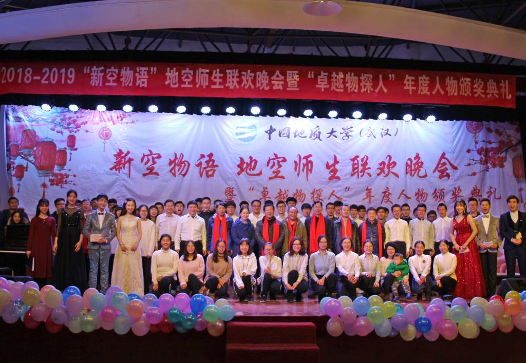 1月2日晚7点,开云体育官网 “新空物语”师生迎新年联欢晚会暨“卓越物探人”年度人物颁奖典礼在大学生活动中心二楼举行。学院全体班子成员、就业创业指导处副处长陈慧、学院教师与全院同学一同观看晚会,喜迎2019年新年。