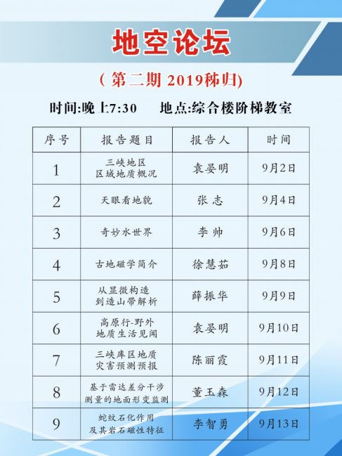 在秭归产学研基地开展的论坛活动受学生和老师的好评,已经开展两年,今年将继续开展论坛活动,涉及地质学、地质灾害学、遥感地质学和野外生存等丰富内容。