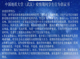 活动开始,全体同学起立,奏唱国歌。奏唱完毕之后,团支书周丹同学首先给大家播放了一些与抗击疫情相关的视频,加深了大家对此次疫情的了解。然后引导同学们一起学习了习近平总书记关于疫情的重要讲话文件以及《中国地质大学(武汉)疫情期间学生行为倡议书》。