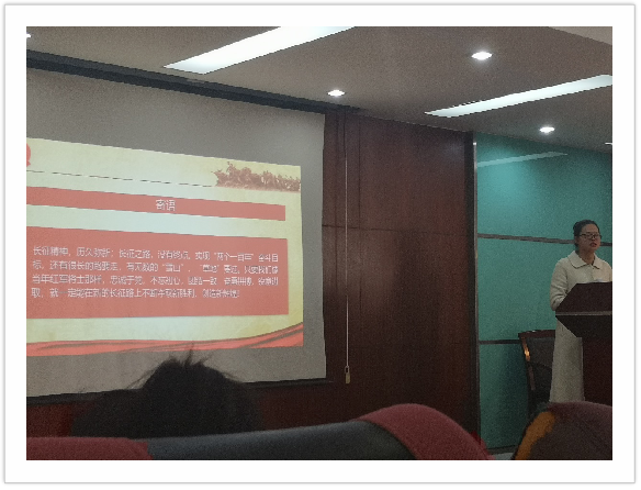 在活动开始前,每一位支部成员均提前到场签到,这体现了同学们对本次团会十分重视。9时,全体起立、奏唱国歌,主持人、来自马克思主义学院的冯梅同学宣布“走弘扬长征精神,传承红色基因”主题团会正式开始。