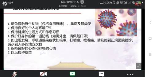 之后,支部成员一起观看学习了有关新冠病毒的知识。了解了病毒致病机理,传播途径,易感人群,疫情现状和目前国家出台的举措。通过对病毒的全面了解与学习,有利于我们做好应对防控。田振华同志结合他的自身感受,带领大家讨论了自由讨论了疫情期间,作为一名党员我们应该怎么做。疫情当前,每个人都要尽自己的责任。张博同志与王志鹏同志结合自身情况,讲解了面对新型冠状肺炎病毒引发的疫情,作为一名党员应做的事情与应尽的责任:作为一名党员,尤其是“汉归”人员,我们最重要的是做好自我隔离,不串门,不访友,避免造成交叉感染引起病毒二次传播。有条件有能力的,在保护好自身前提下积极参加志愿服务活动。我们要时刻谨记,疫情胜利的号角已经吹响,但是我们却不能松懈,要坚决守护好防护疫情的“最后的一百米”。