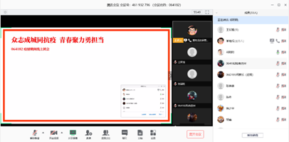 2020年3月7日14:00,064182团支部全体成员在线上召开以“众志成城同抗疫,青春聚力勇担当”为主题的团会。本次团会由团支书李伟光同学主持。