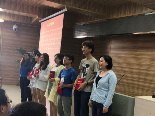 袁晏明老师和徐慧茹老师在给060161班优秀学生颁奖