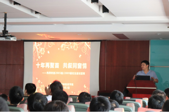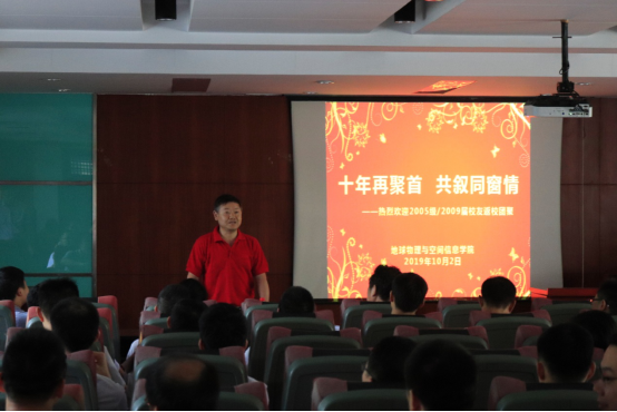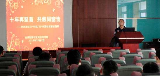 (通讯员 李周波)10月2日上午,学院在物探楼222报告厅召开2005级校友返校相聚欢迎会。学院领导、老教师、2005级9个班级共100余位校友等出席了会议。会议由学院党委副书记李周波主持。