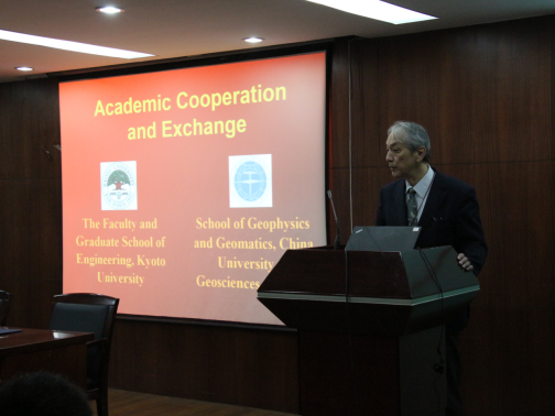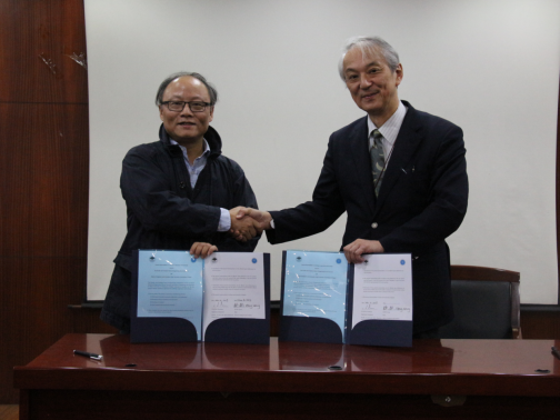 在物探楼222学术报告厅签署学术交流合作协议。Hitoshi Mikada教授与熊熊院长代表双方共同签署院际合作协议。学院副院长吴柯主持签署仪式。校人事处处长胡祥云、校国际教育学院中外合作办学办公室主任宫斯宁、学院党委书记刘子忠、学院院长熊熊等出席仪式。