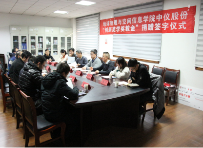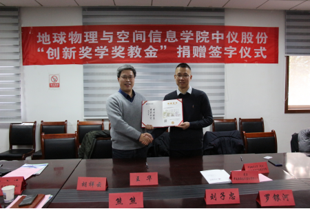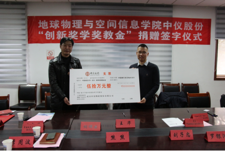 中仪股份“创新奖学奖教金”捐赠仪式在物探楼214会议室举行。武汉中仪物联技术股份有限公司董事长郑洪标、总经理助理张婉珈,副校长王华,学校教育发展基金会副秘书长吕占峰,开云体育官网