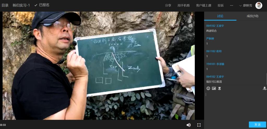 图2 腾讯课堂直播野外露头和老师教学过程