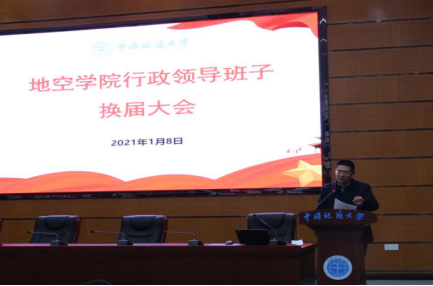 于东区教学综合楼A0113召开学院行政领导班子换届大会,党委常委、副校长刘勇胜、组织部副部长梁本哲出席会议并讲话,学院党政领导班子成员和全体教职工参加会议。会议由学院党委书记刘子忠主持。