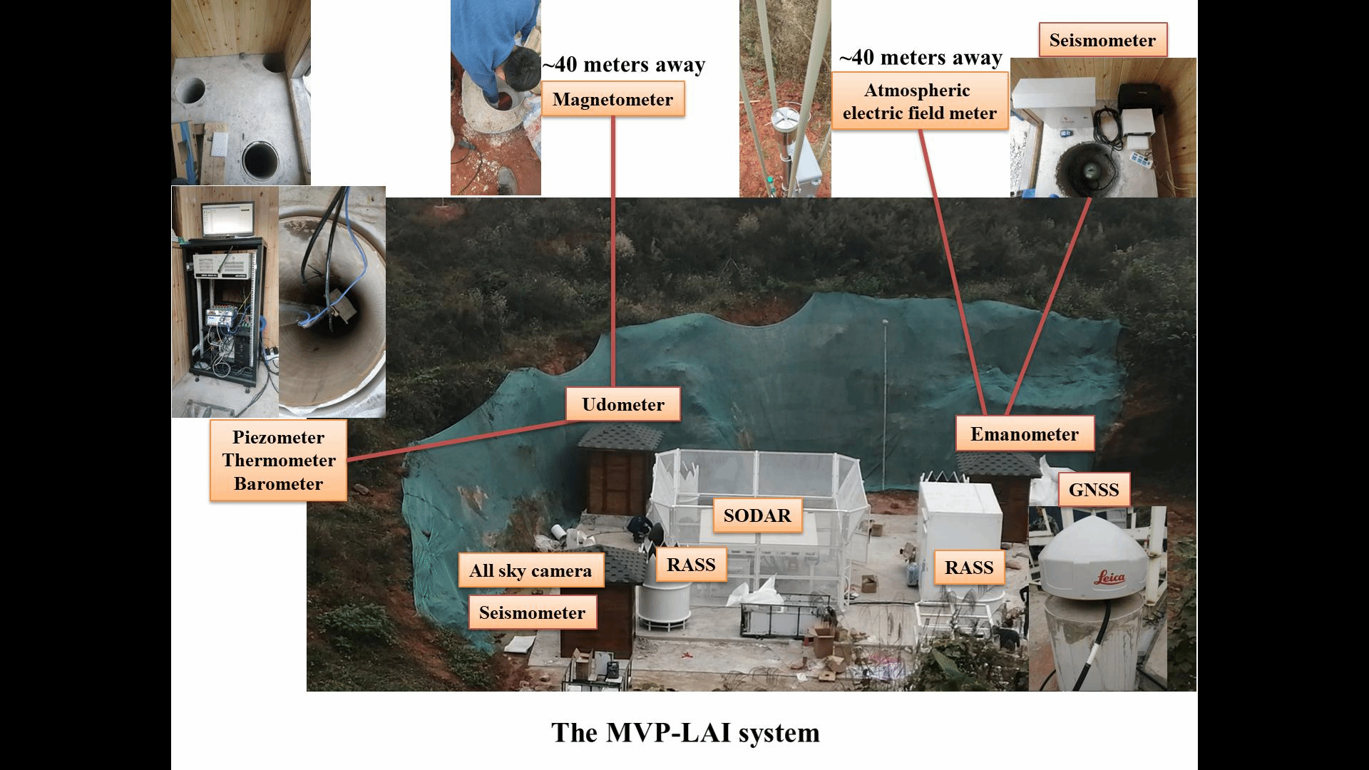 陈界宏团队主持,并联合武汉大学、浙江大学、中国地震局、四川省地震局等十余个单位建设的全球首个跨圈层扰动监测(MVP-LAI; Monitoring of Vibrations and Perturbations in Lithosphere, Atmosphere and Ionosphere)系统。该站位于四川省乐山市市郊,西邻青藏高原,南望云贵高原,东连四川盆地,北接著名的龙门山断裂带,周边地质活动活跃,十分利于开展地球物理和地震与地质灾害等研究。