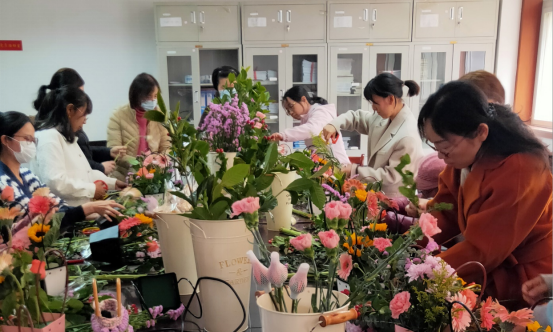 分工会于3月24日在物探楼举办女教师艺术插花活动。学院党委书记马彦周、全体女教师参加了此次活动,活动由工会文艺委员曹雪莲主持。