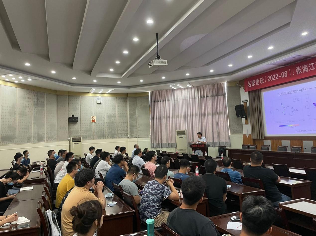 报告后的讨论环节,张海江教授与在场的师生就地震预报的可行性,先存断层对诱发地震的影响,以及非双力偶对反演的影响等问题进行了讨论,并对应力场反演,库伦应力反演等技术细节进行了更详细的解答。