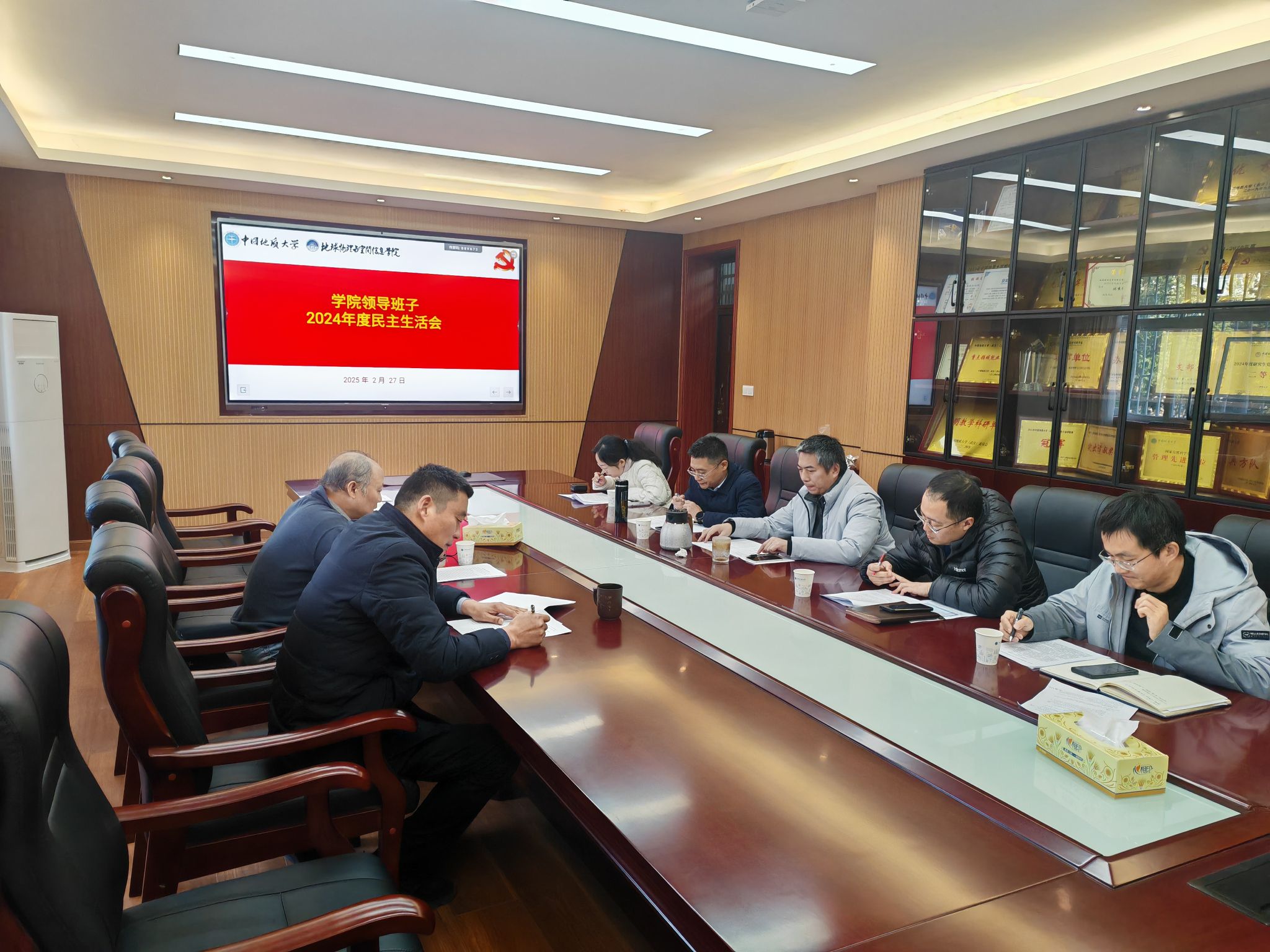 会前,学院领导班子严格按照《中共中国地质大学(武汉)委员会关于开好 2024 年度党员领导干部民主生活会的实施方案》要求,通过组织集中学习与个人自学相结合的方式,深入学习党的最新理论成果,打牢思想基础。班子成员之间、与师生代表广泛开展谈心谈话,交流思想、听取意见,并结合领导干部经济责任审计和学校第十三届党委第二轮巡察反馈意见,深入查摆问题不足,认真撰写对照检查材料,为会议的高质量召开做了充分准备。